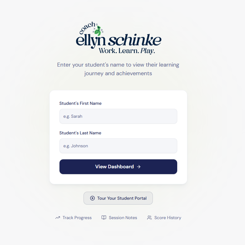 Do you have a student tutoring with me? Access their progress tracker, homework, and more here!